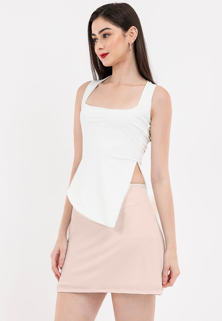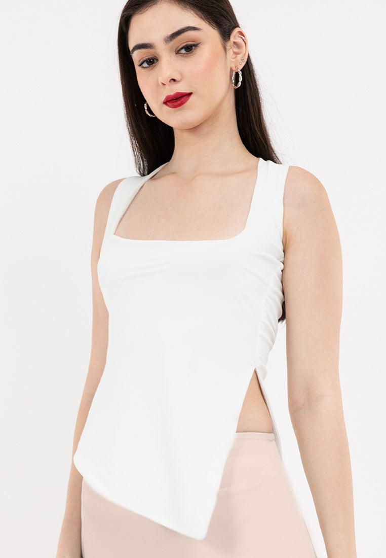 GRACE is a modern asymmetric top that effortlessly blends structure and ease. Designed with a square neckline and relaxed silhouette, it offers understated elegance with a contemporary twist. The asymmetrical hem adds movement and visual interest, while the stretch fabric ensures a flexible, comfortable fit. Finished with a full lining for a polished feel, this versatile piece transitions seamlessly from casual days to elevated evenings. Pair it with denim for an effortlessly chic look