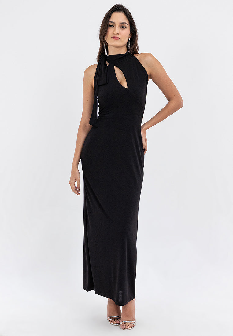 The Lira Maxi Dress is the embodiment of effortless sophistication and modern allure. Designed with a high halter neckline and a striking asymmetrical peephole, it reveals just the right amount of skin with a sexy plunge. The self-tie neckband adds a touch of drama, while the sleek straight-fit silhouette falls gracefully to a maxi length. Perfect for modern bridal moments, elegant soirées, or any occasion where timeless glamour takes the spotlight