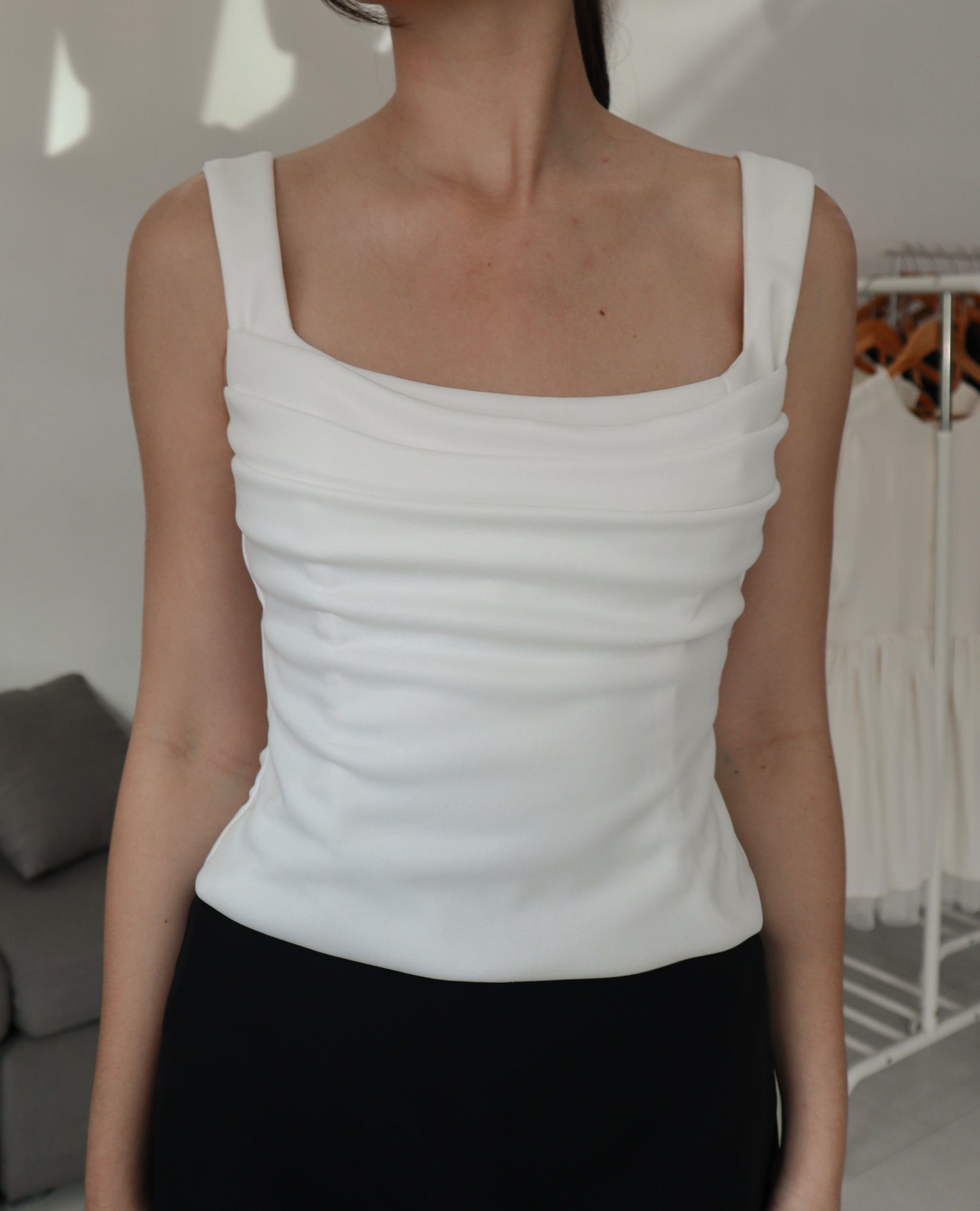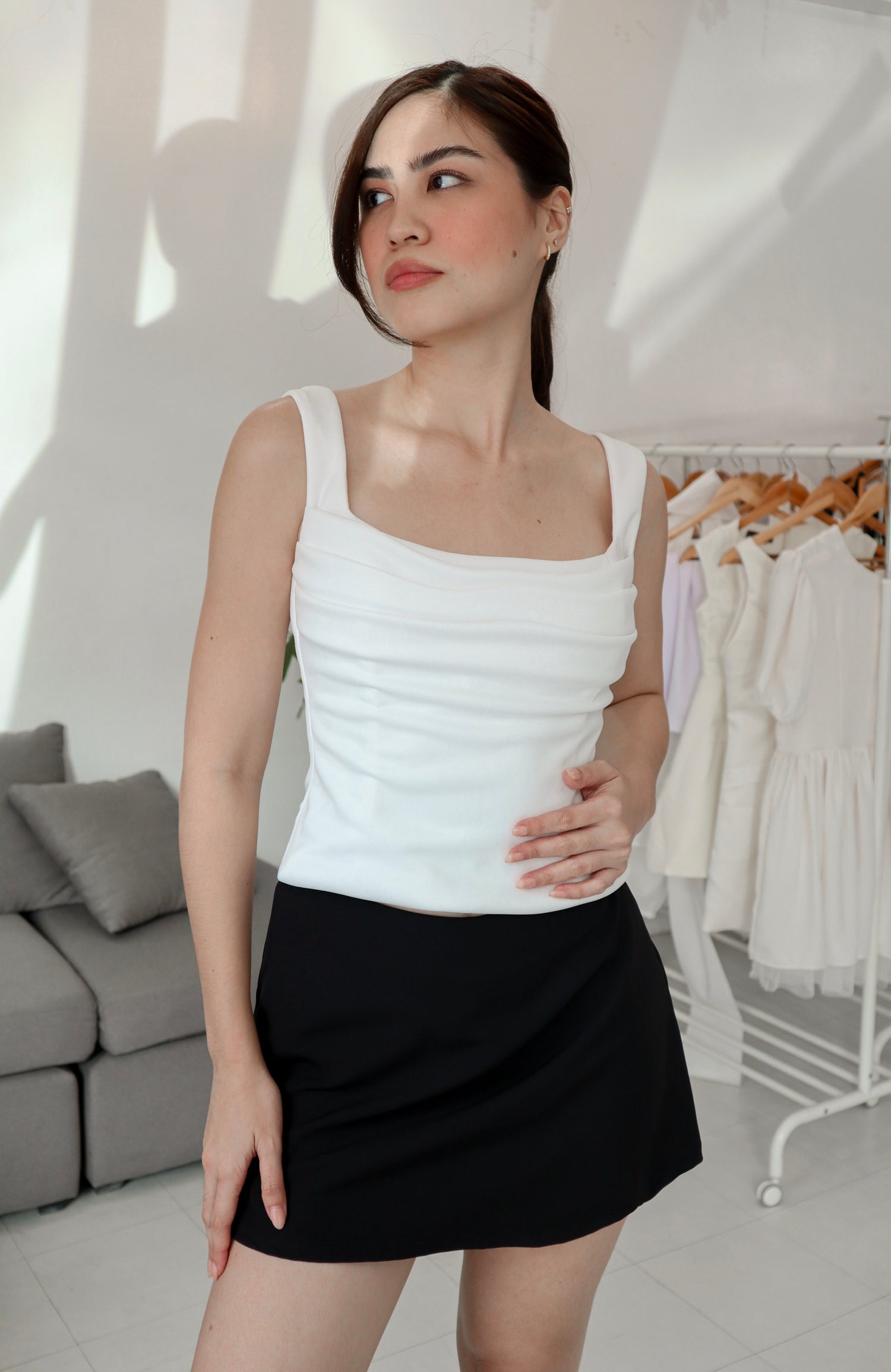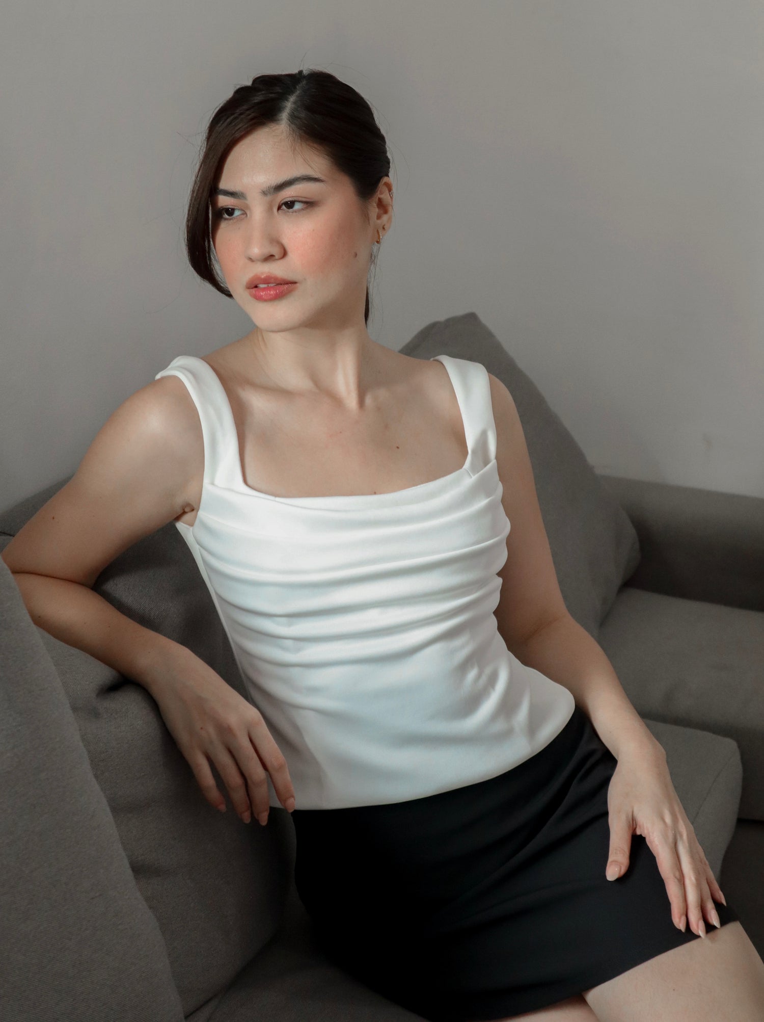 The Mona Squareneck Top reimagines an everyday essential with a sculptural touch. Designed with a clean square neckline, soft draping across the bust adds dimension and subtle drama while maintaining a refined, easy silhouette. Crafted from stretch neoprene and fully lined for comfort, Mona transitions effortlessly from casual styling to elevated pairings—perfect with the Kerry Skirt or styled simply with denim for a polished everyday look.