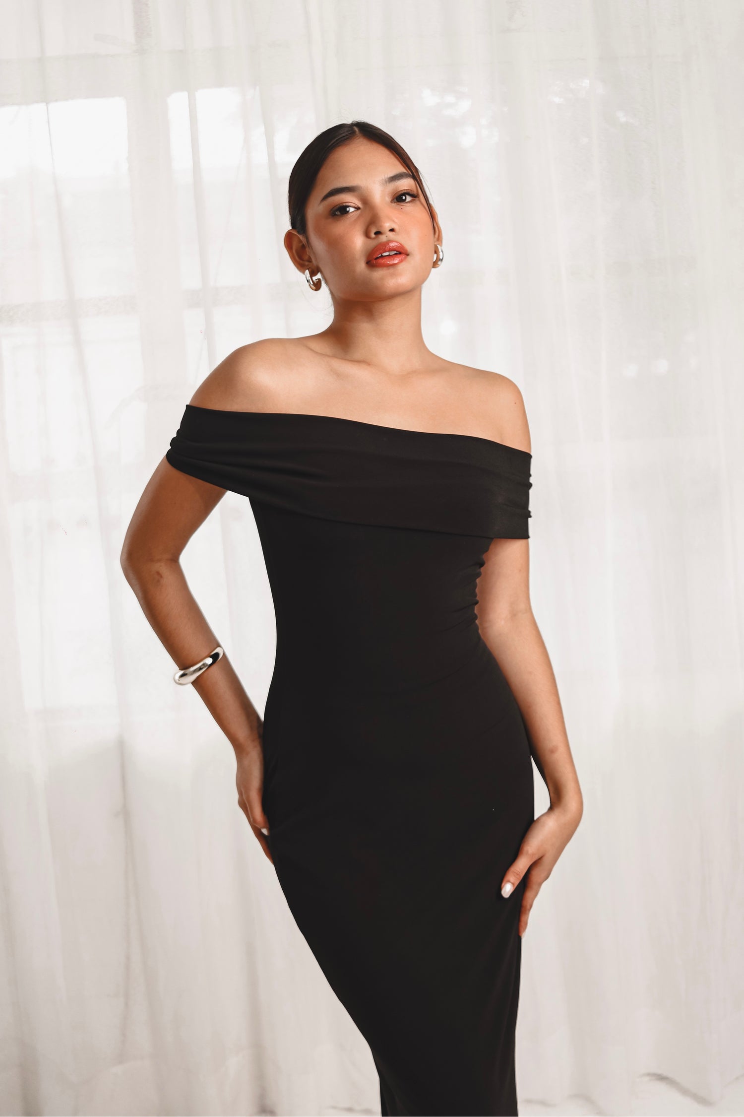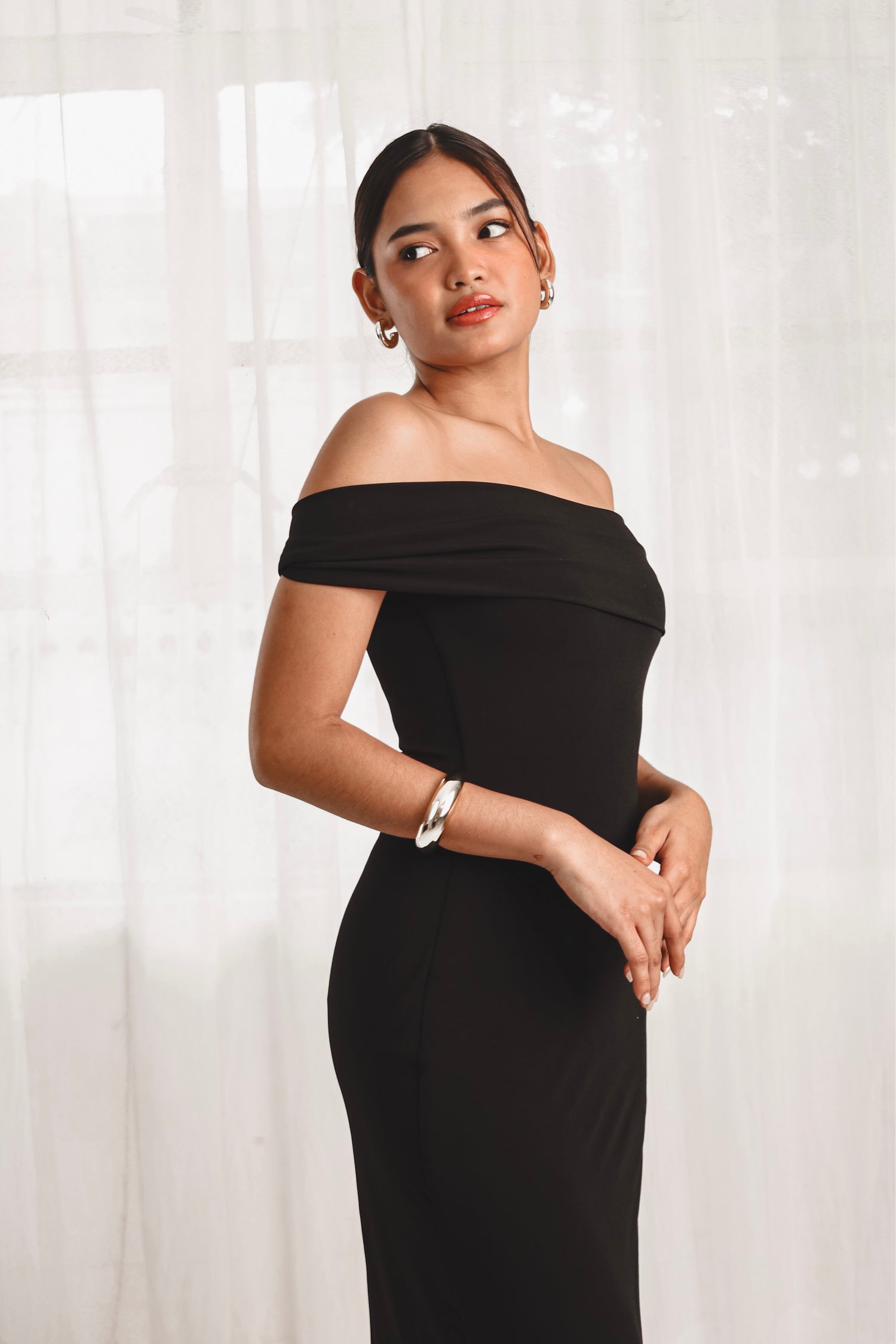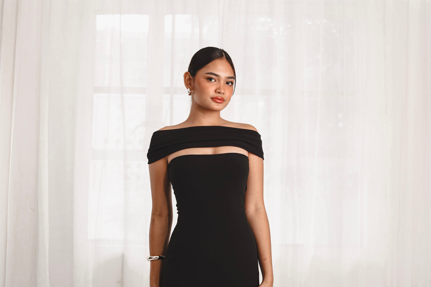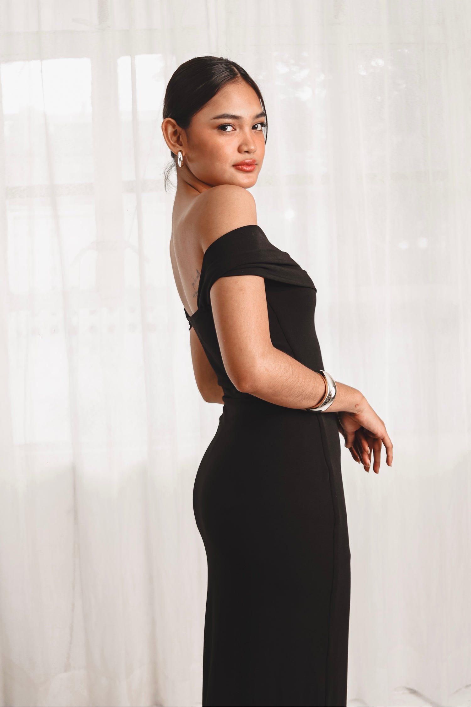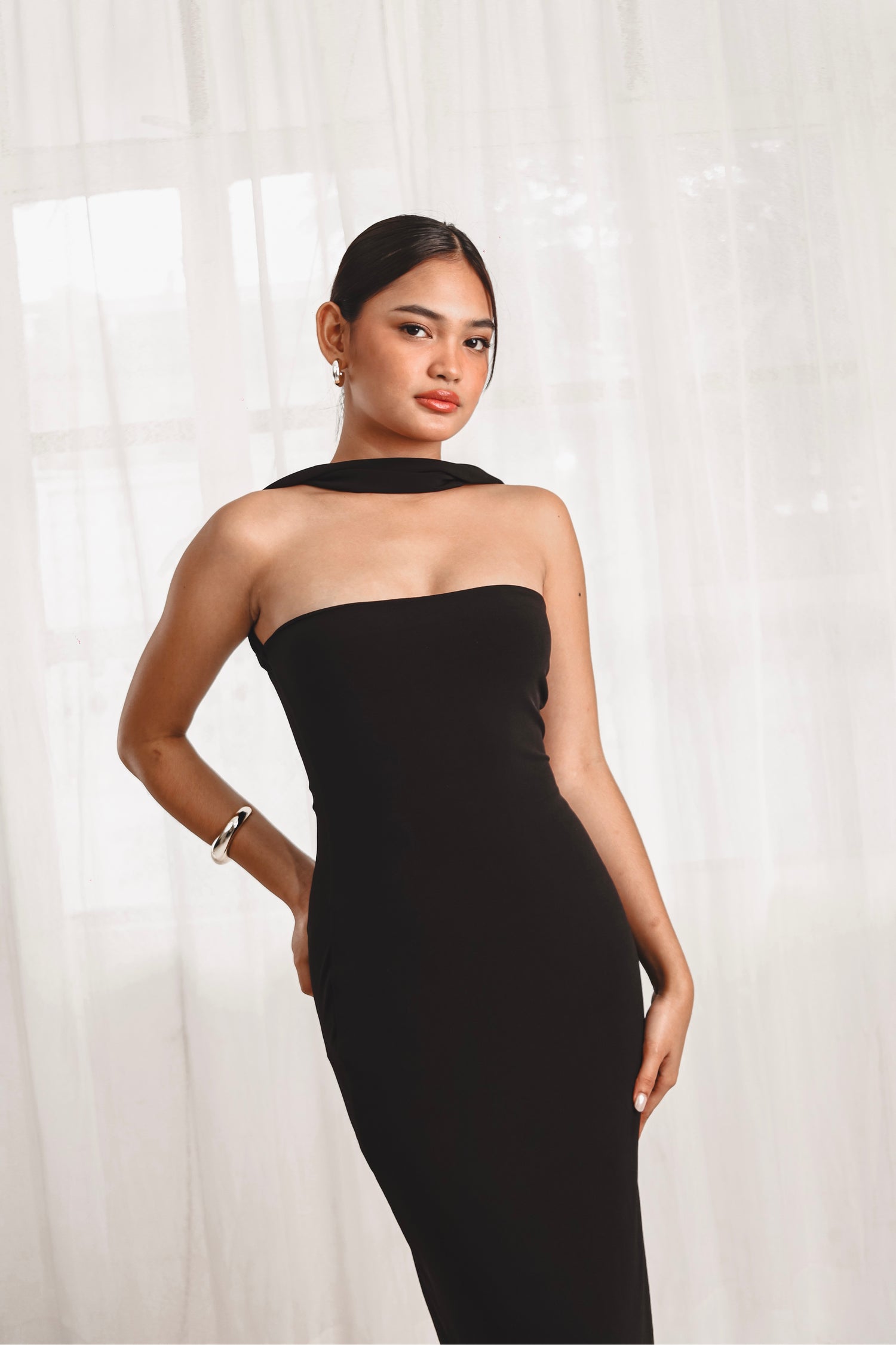 The Renner Maxi Dress is your go-to for understated drama and endless versatility. Designed with a sleek straight neckline and a detachable off-shoulder panel, it offers three elegant styling options—draped across the shoulders for subtle allure, pulled down for added coverage, or wrapped around the neck as a scarf for a refined twist. The fitted silhouette skims the body beautifully, blending ease and sophistication. From intimate dinners to after-dark occasions, Renner moves effortlessly with you—modern, timeless, and endlessly adaptable.