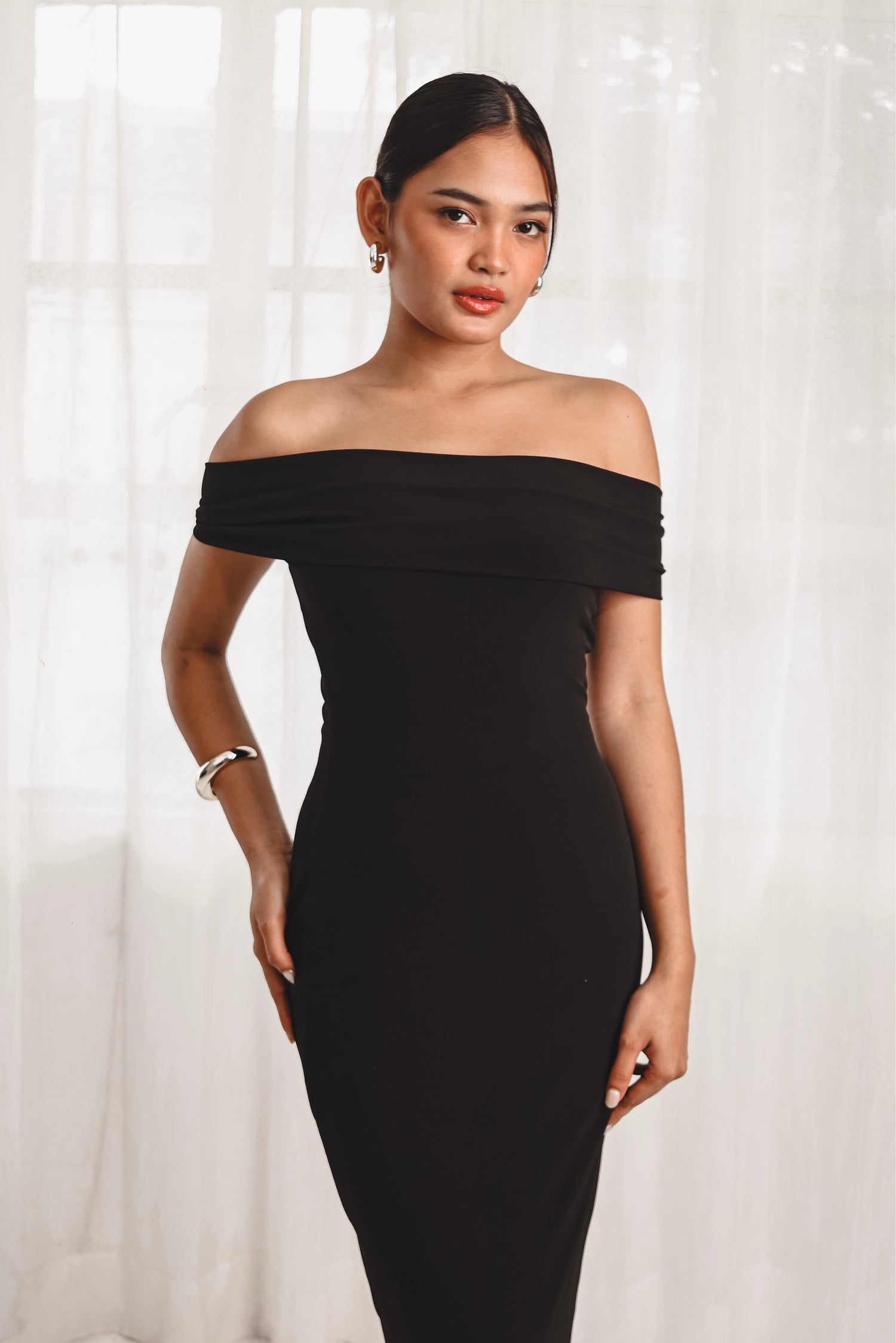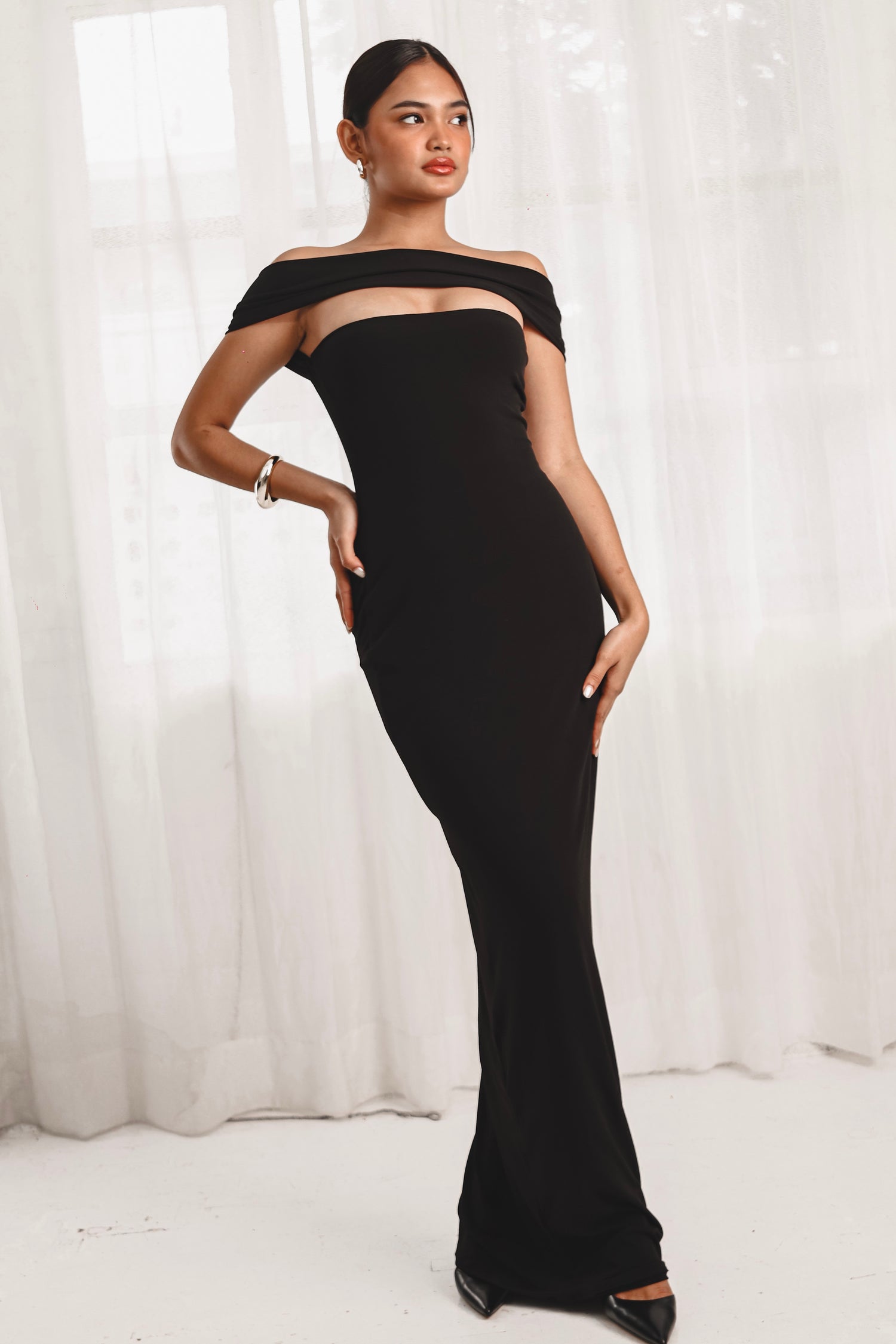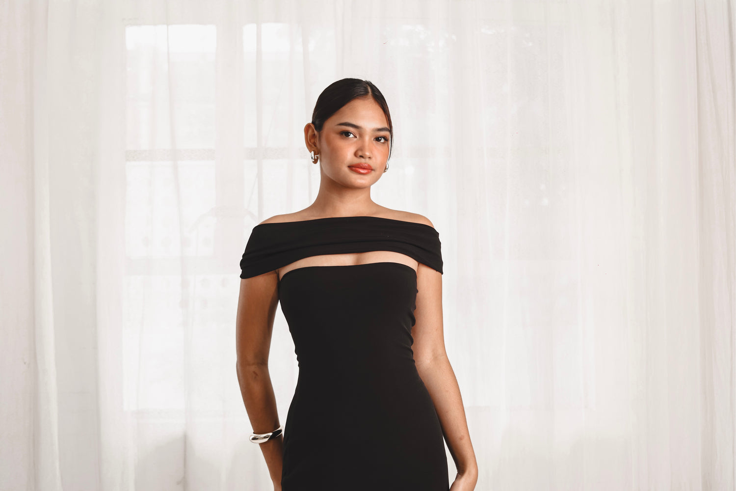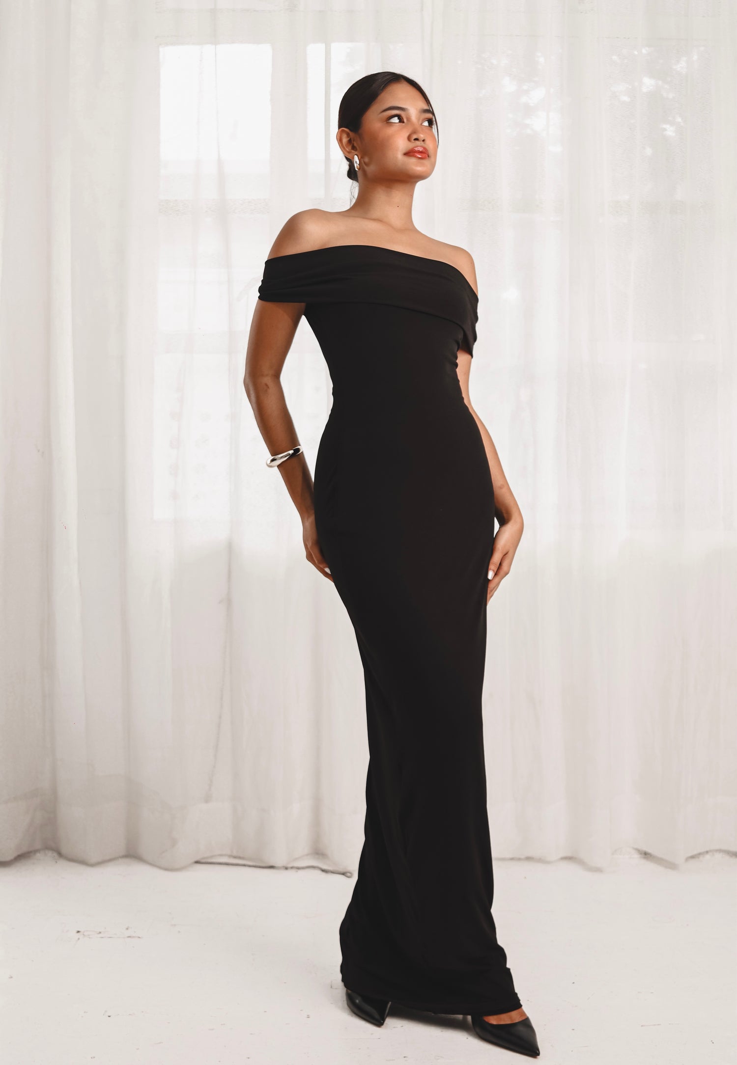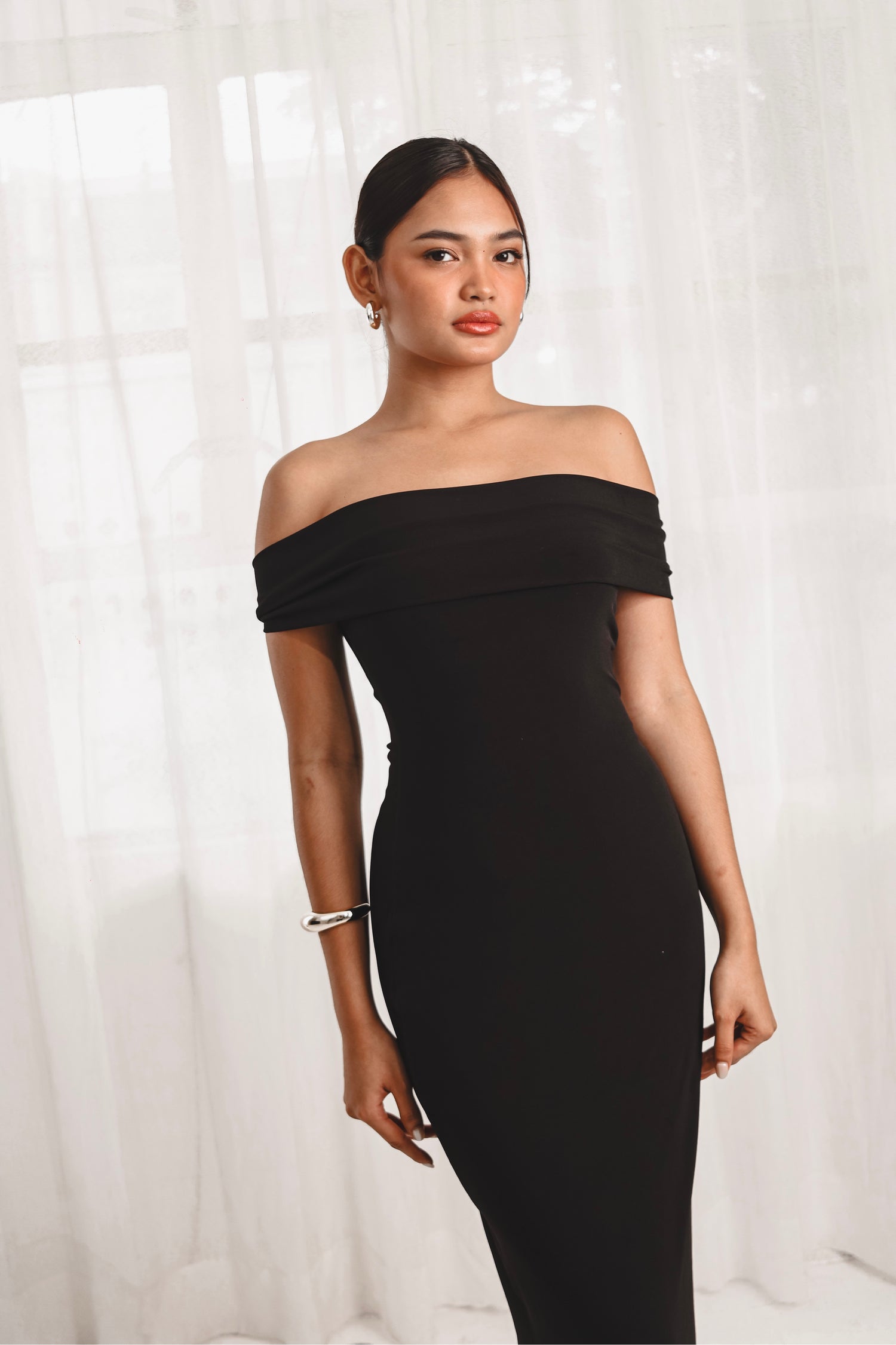 The Renner Maxi Dress is your go-to for understated drama and endless versatility. Designed with a sleek straight neckline and a detachable off-shoulder panel, it offers three elegant styling options—draped across the shoulders for subtle allure, pulled down for added coverage, or wrapped around the neck as a scarf for a refined twist. The fitted silhouette skims the body beautifully, blending ease and sophistication. From intimate dinners to after-dark occasions, Renner moves effortlessly with you—modern, timeless, and endlessly adaptable.