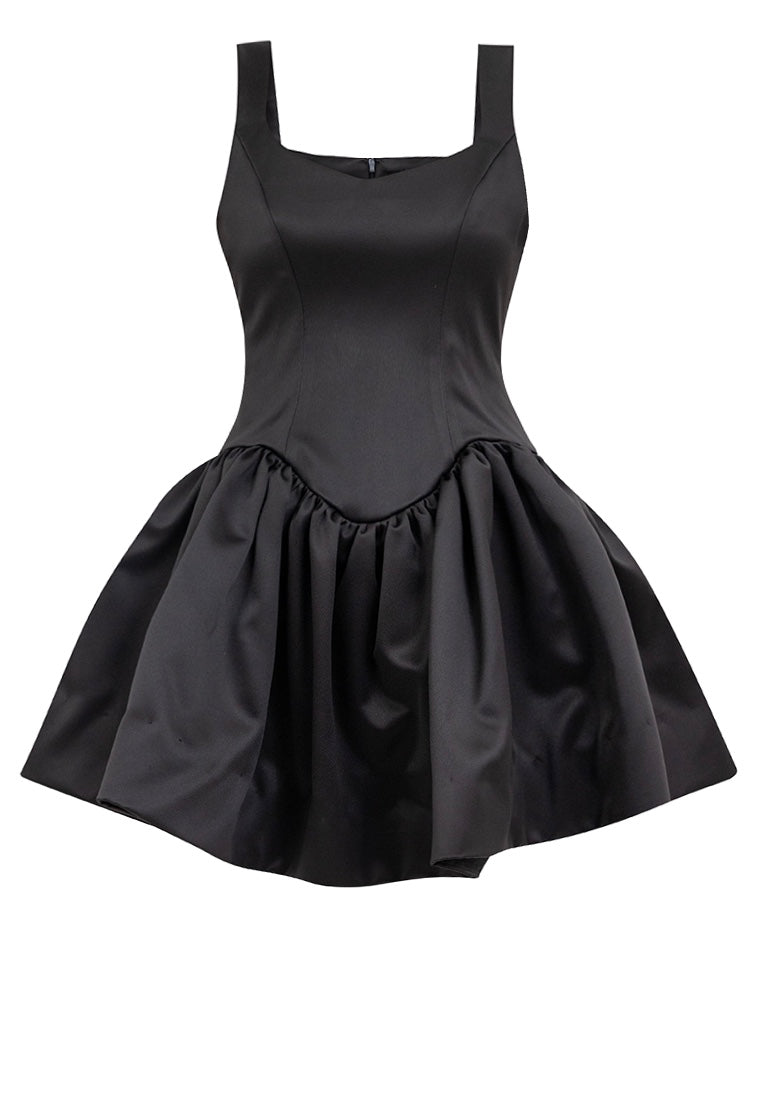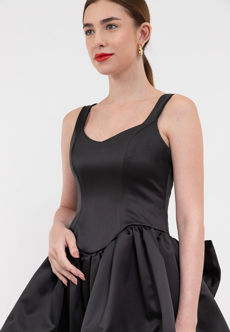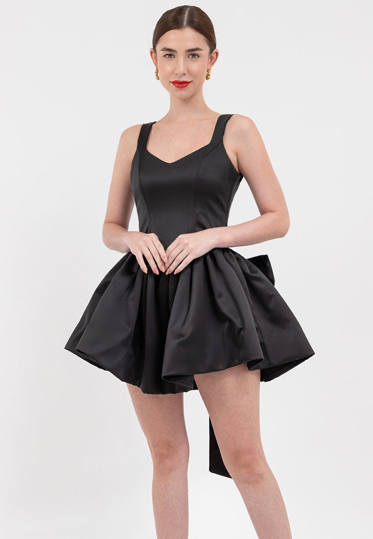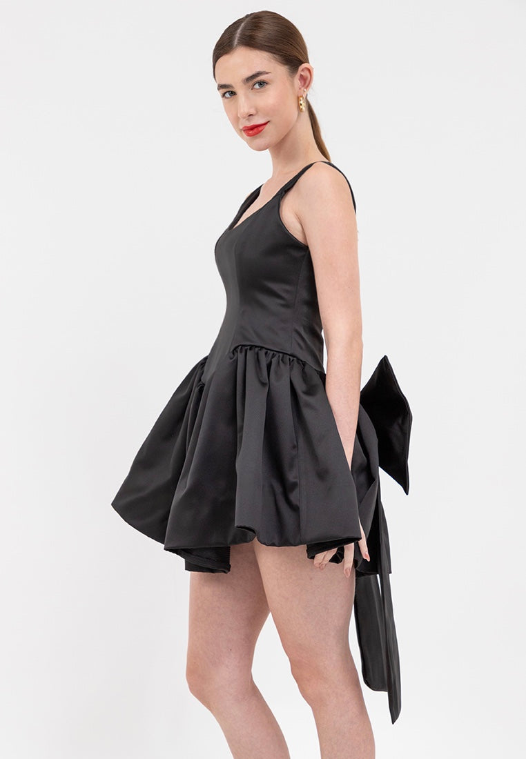 Bow-Detail Satin Mini Dress in Black